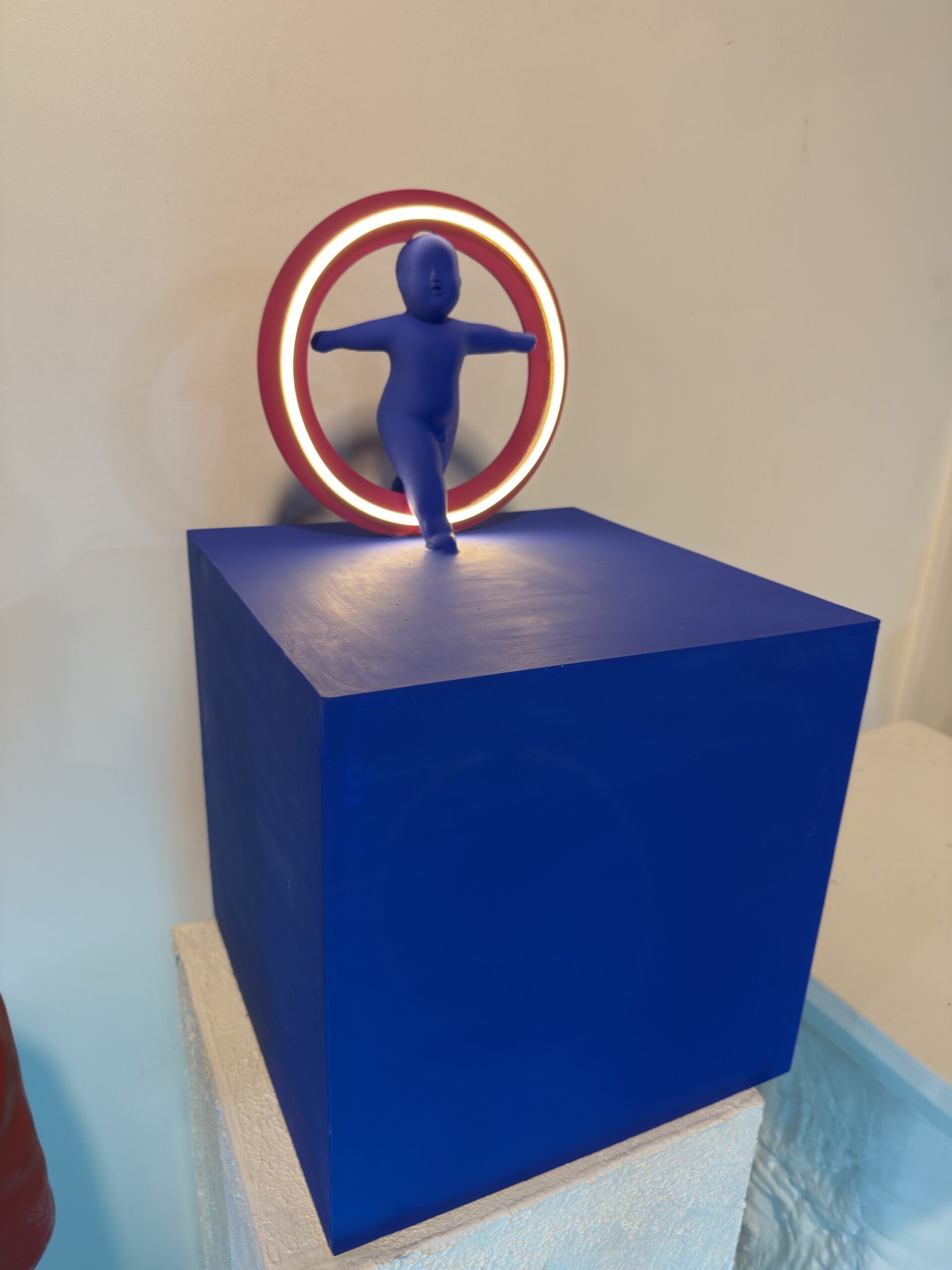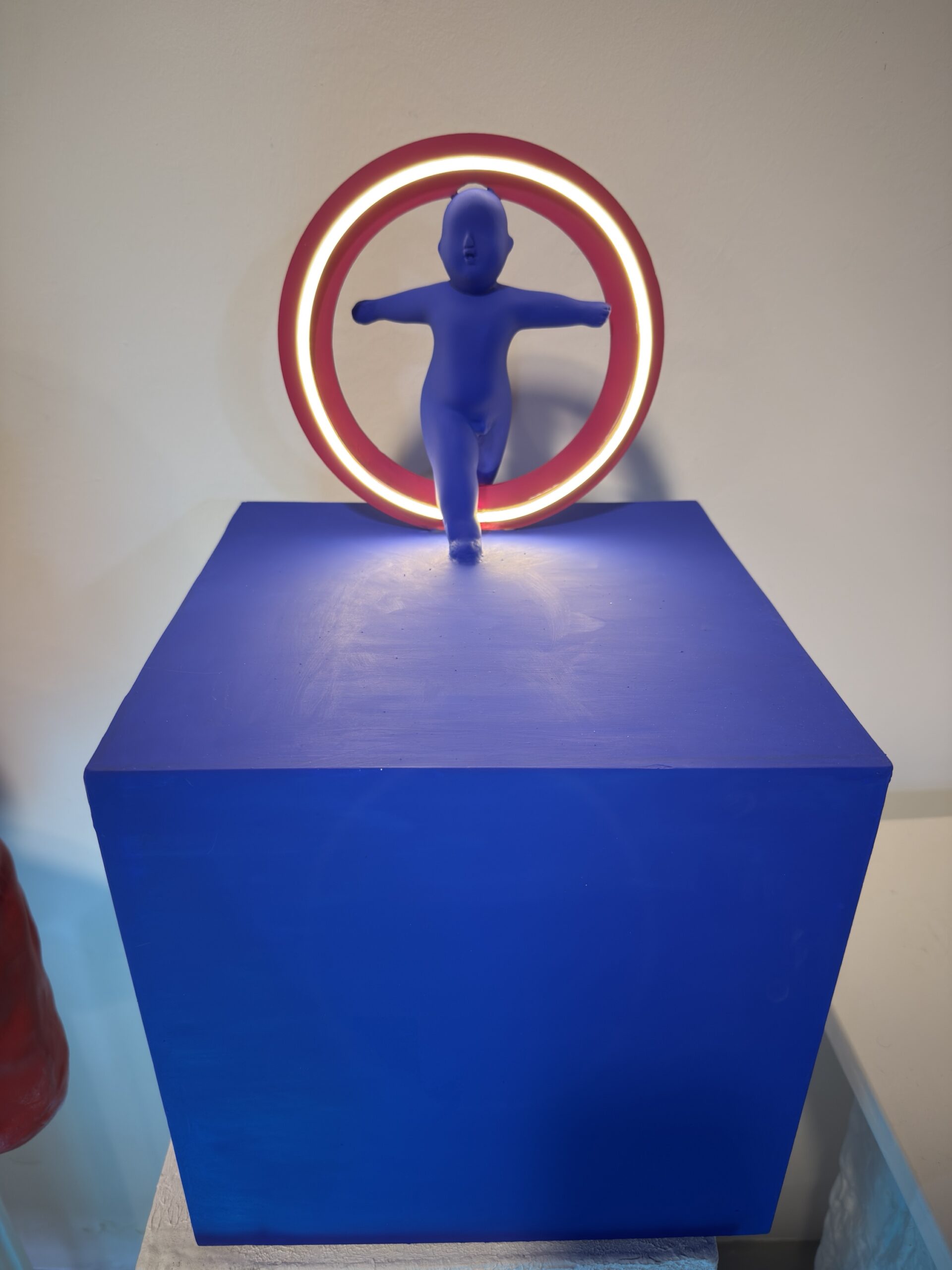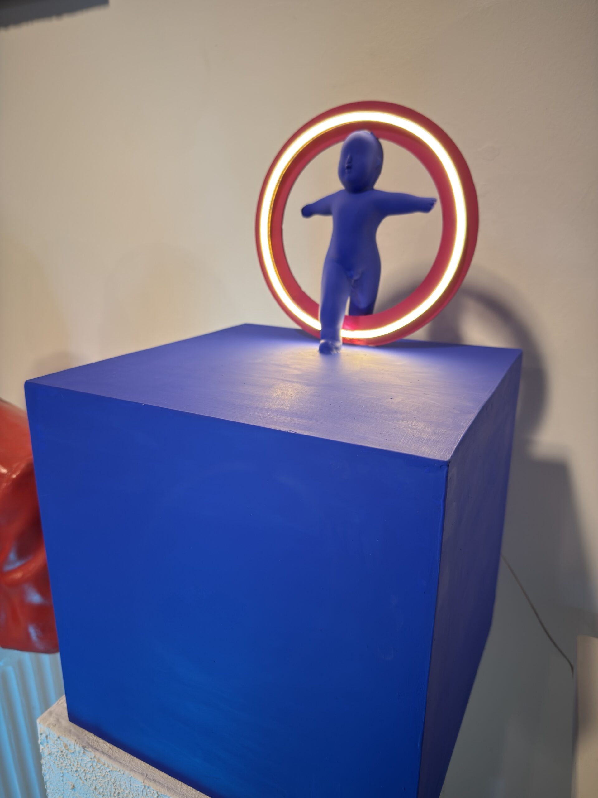 Minimalizm ve modern sanatı bir araya getiren Halo Işık Heykeli, bulunduğu ortama güçlü bir karakter kazandırır. Canlı renklerde tasarlanmış figür ve arkasındaki neon halka aydınlatma, hem dekoratif hem de atmosferik bir ışık kaynağı sunar.