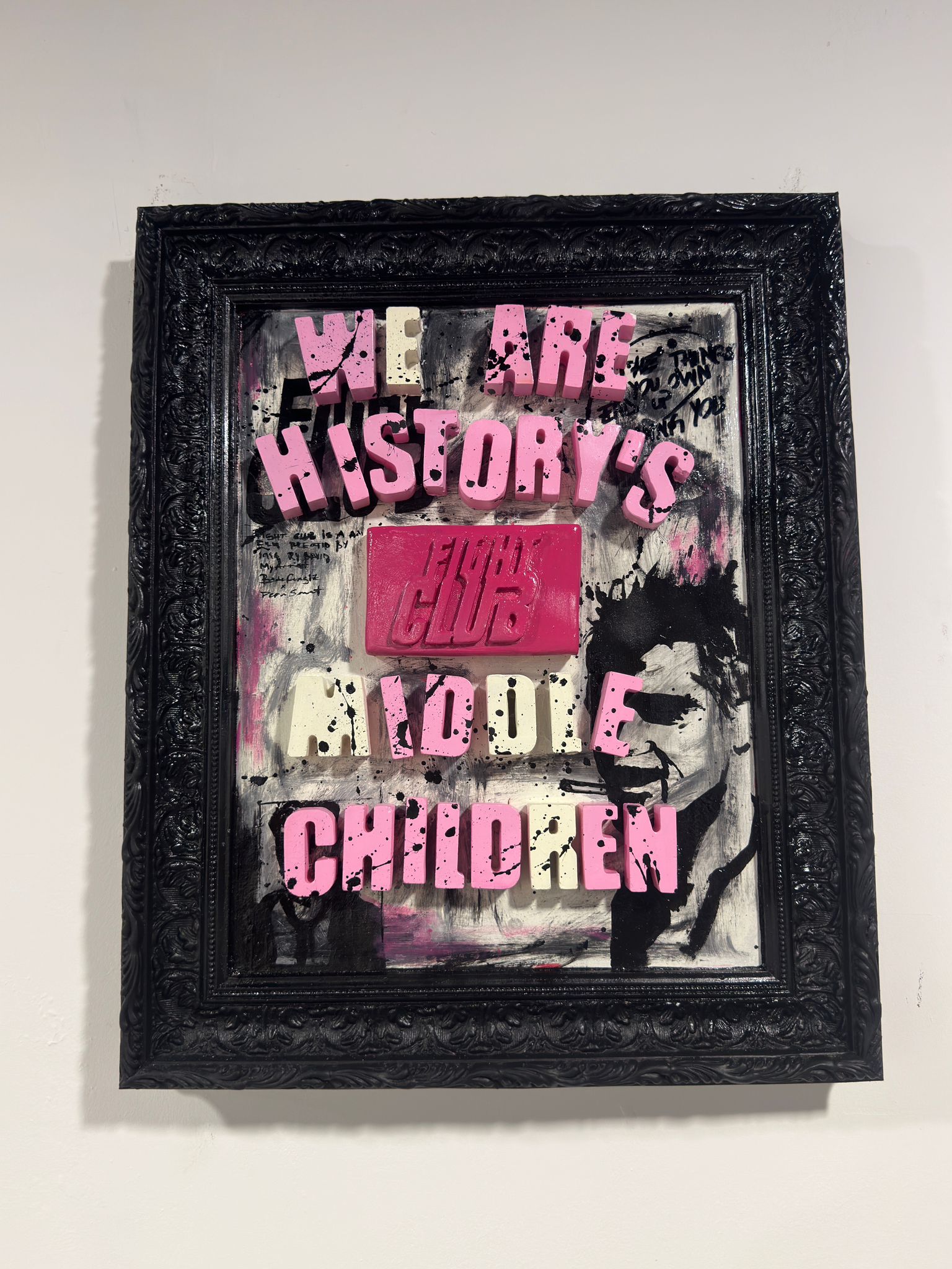 Fight Club göndermesiyle kimlik, aidiyet ve isyan temalarını bir araya getiren tablo; siyah çerçevesiyle mekâna güçlü bir karakter katıyor. Duvarlarınıza sanatsal bir ifade ve modern bir ruh kazandırmak için ideal.