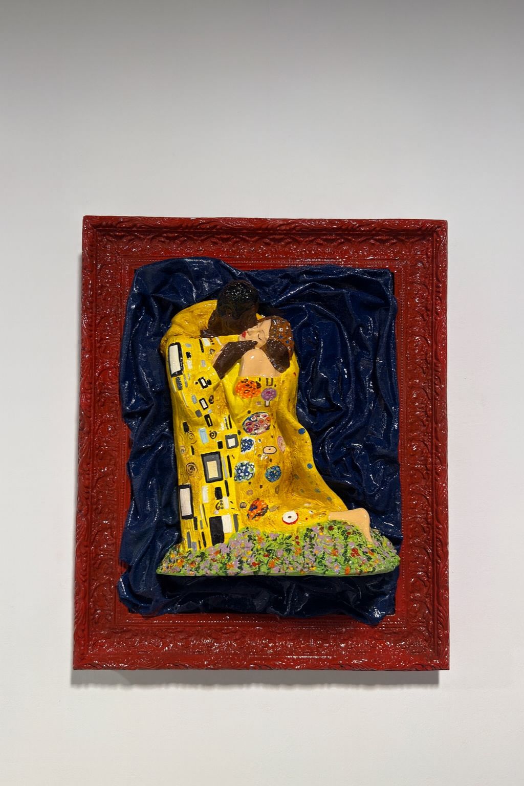 Klasik ile modernin buluştuğu bu eser, Klimt’in ikonik “The Kiss” tablosunu üç boyutlu biçimde yeniden canlandırıyor. Cesur renkler ve dokusal detaylar, esere hem nostaljik hem çağdaş bir ruh kazandırıyor.