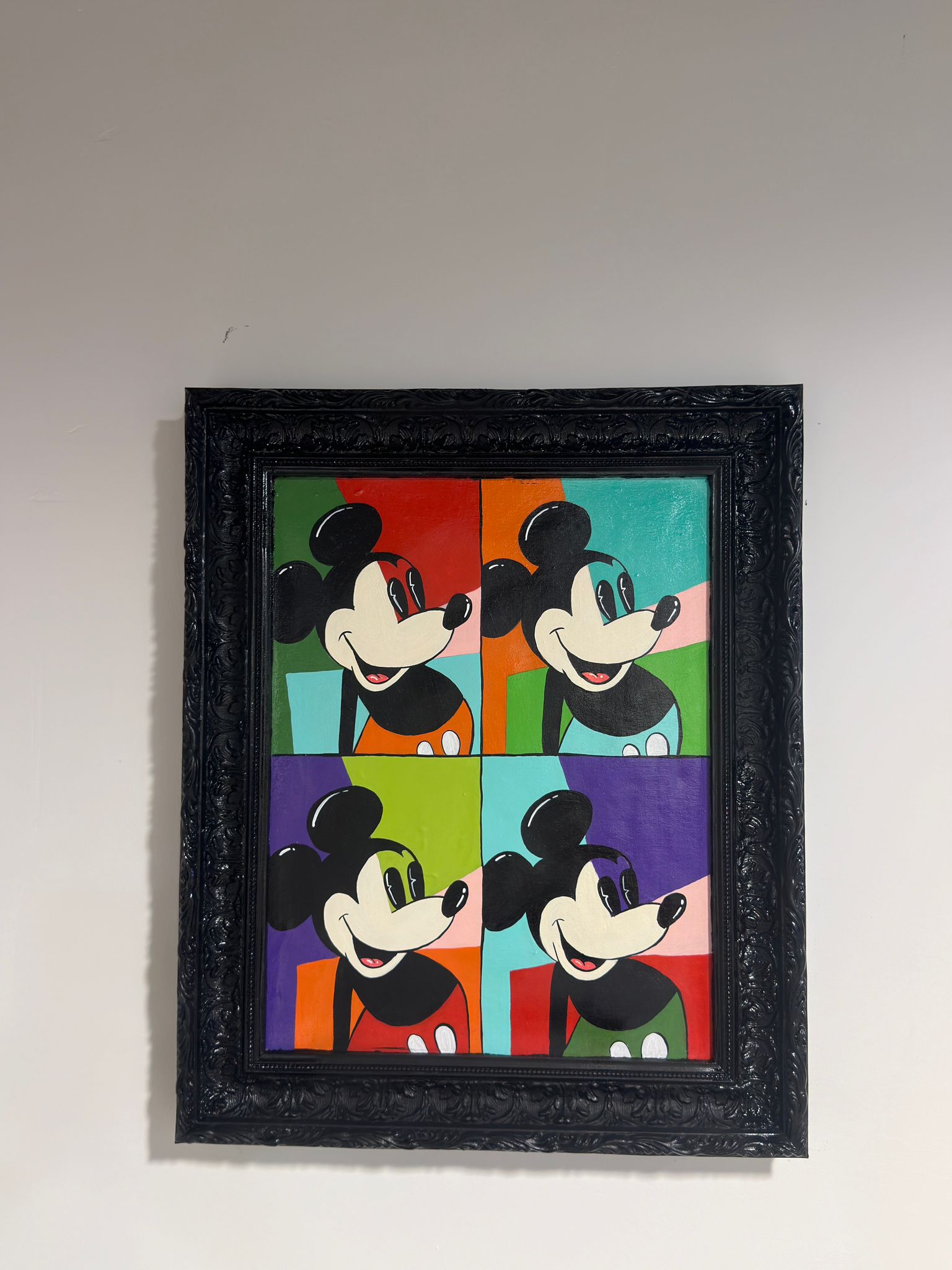 Pop art yorumu ile mickey mouse tablosu.